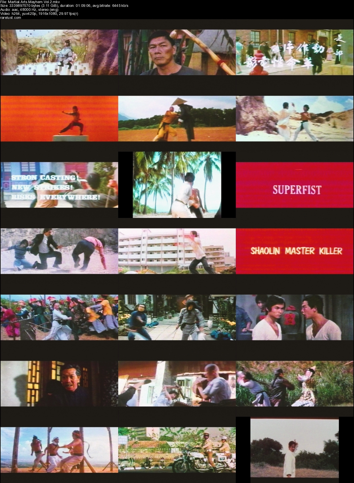 Description: Preserved from the original 1990s Something Weird S-VHS tape masters non-stop barrage of attention-grabbing punches, kicks, explosions, and occasional nudity. Rapid fire trailers ensure that the viewer never even has a chance to be bored, though he or she may become desensitized.