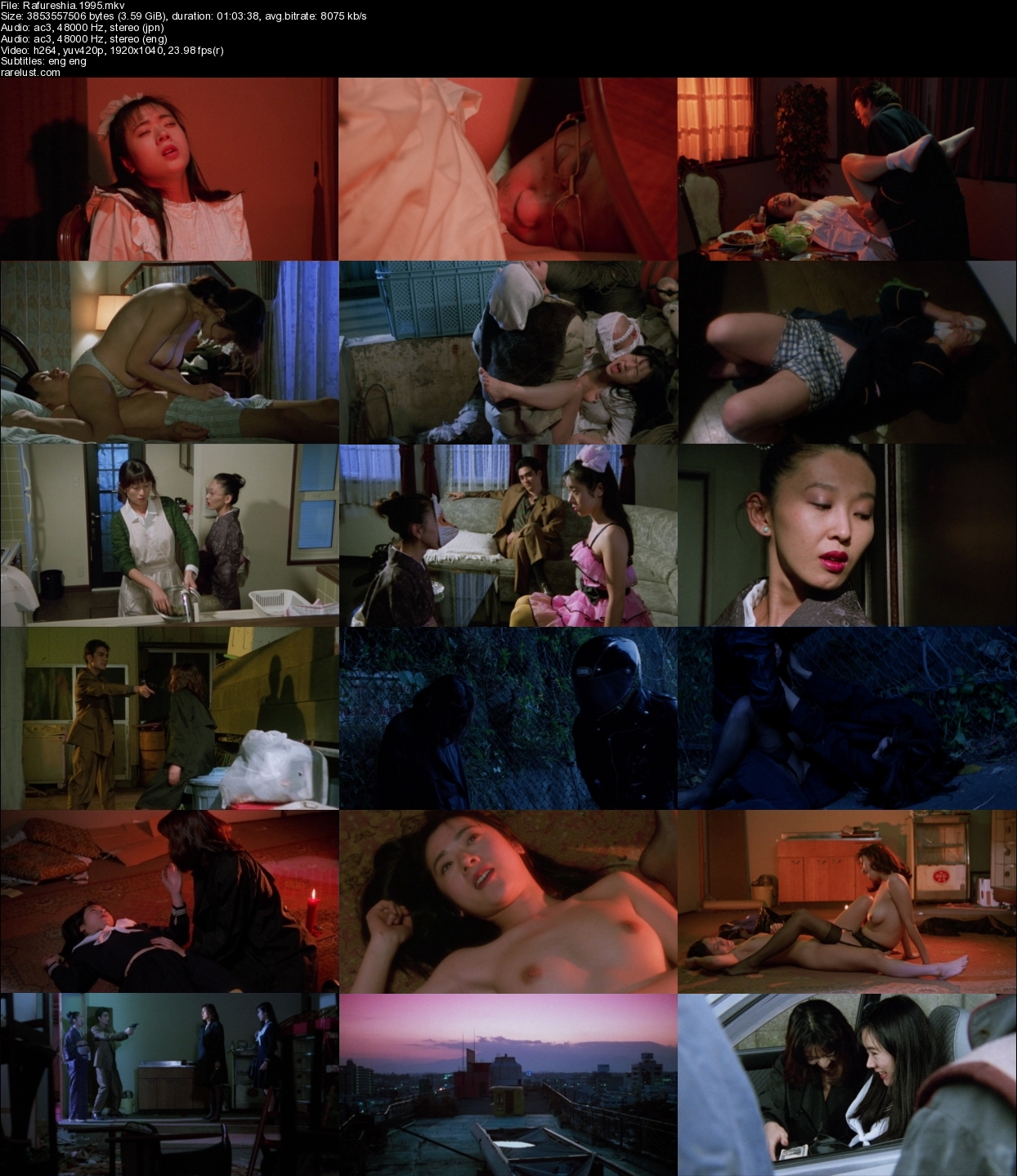 Description: An episodic story about the sexual experiences of three women in Tokyo. A housewife is hunting for men at night and her mother-in-law runs a sex club. A girl who came from the countryside now gets to know the liberal sides of the city.